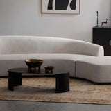 Sigrid Oval Coffee Table - sleek & contoured minimalist design. Matt black painted raw aluminium. These hand cast products display some tooling marks - this is normal & not considered a fault or flaw; rather, it is a unique & beautiful characteristic of your piece.
