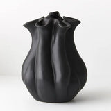 Annabella Vase in Black boasts a stunning design that appears almost twisted, offering a captivating statement piece for floral arrangements or decorative use. Its unique form adds an artistic touch, making it an exquisite addition to any space, whether showcasing blooms or standing alone as a symbol of elegance and style. Vase is not watertight.