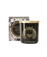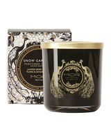 Lavish black Soy Wax is hand poured into a gold embellished glass vessel complete with an adorned lid to exude a signature fragrance in Snow Gardenia and create a mood of opulence.