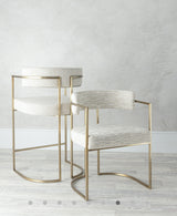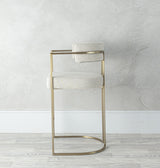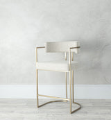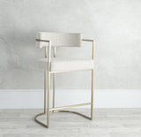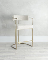 The Anna Barstool is the embodiment of timeless sophistication. Its antique brass frame, curved back, and tasteful cut-out detail create a perfect blend of elegance and modern charm, elevating your dining experience with style and comfort in mind.