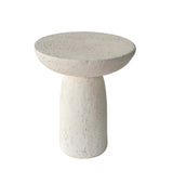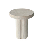 The travertinw side table composed of MGO is an Engaging furniture piece that will lift an interior and help to create visual depth and warmth. Can be nested with the Travertine coffee table. Available in a round base or a grooved base.