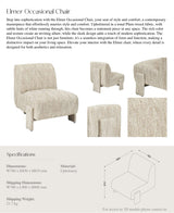 Step into sophistication with the Elmer Occasional Chair, your seat of style and comfort, a contemporary masterpiece that effortlessly marries style and comfort. Upholstered in a tonal beige tweed fabric, with subtle hints of white running through, this chair becomes a statement piece in any space. The rich color and texture create an inviting allure, while the sleek design adds a touch of modern sophistication. The Elmer Occasional Chair is not just furniture; it's a seamless integration of form and function, making a distinctive impact on your living space. Elevate your interior with the Elmer chair, where every detail is designed for both aesthetics and relaxation.