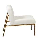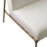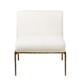 Art, design & function combine to bring you the Milana Chair. Elegant in its minimalism, this sculpturally inspired chair merges the rustic appeal of a hand-forged metal base with tailored ivory upholstery. The hand hammered metal reveals an imperfect, alive & organic texture, complementing the sleek & simplistic silhouette of the frame. Ivory upholstery – 65% cotton 35% Linen.