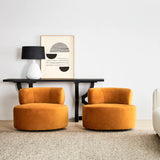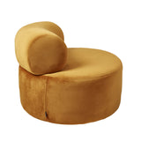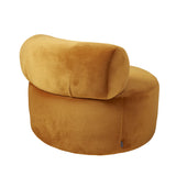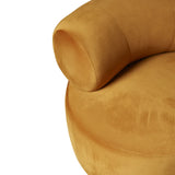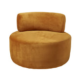 The Serene Swivel Chair in Cognac velvet is the perfect accent chair to complement your existing furniture and add some texture & contrast to your space. The generously curved cushion back offers comfort and style while the 360-degree swivel & luxe velvet upholstery hints of glam from every perspective. This low-set chair is slightly raised on the inset for a floating effect.