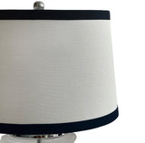 Brighten up your room with sophistication courtesy of our Charlotte Glass and Nickel Lamp. With its sleek glass base, crisp white linen shade, and black trim, this lamp effortlessly blends timeless elegance with modern flair. Crafted from high-quality materials, it promises to add a touch of refinement to any room, whether placed on bedside tables, living room consoles, or office desks.