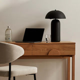 Celebrate the purity of simple forms with the Jai Table Lamp. Defined by its strikingly simple design, this unique dual globe lamp features a round black ceramic cylinder base with black ceramic dome shade. Black fabric cord with dimmer switch. Uses 2 x E27 MAX 40W globes (not included). Do not use LED globes with these lamps.