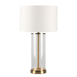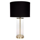 The Nala Table lamp is a modern glass table lamp and would be a sleek addition to any space. Features a brass finish metal rod encased in a clear glass cylinder base trimmed with matching brass metal.