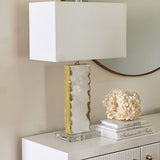 Offering sleek, classic lines and undeniable style, the Valencia table lamp features a striking marble base with gold fleck trimming. Set upon a crystal pedastool, complete with a linen look drum shade and elegant harp and finial fitting, the sophistication of the Valencia adapts to any interior scheme.